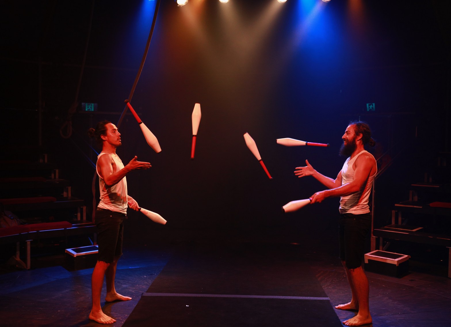 “Down. Rebound.” is a 25 minute duo piece performed by Simon and Ben that centres around themes of support and friendship, mental health and fear, as well as giving a genuine insight into a behind-the-scenes and challenges in circus life. Featuring acrobatics, juggling and aerial rope, the show received positive responses from audiences in both the Circus WA and Girls Schools runs. Read some of these audience reactions here.